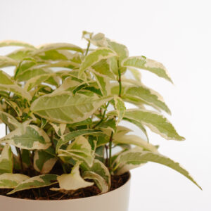 Ficus Variegated is a beautiful ornamental plant with creamy-white and green patterned leaves that brighten up any space.