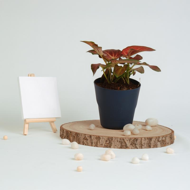 Caladium Red Star is a striking foliage plant with heart-shaped leaves in vibrant red, accented by green edges and veins.