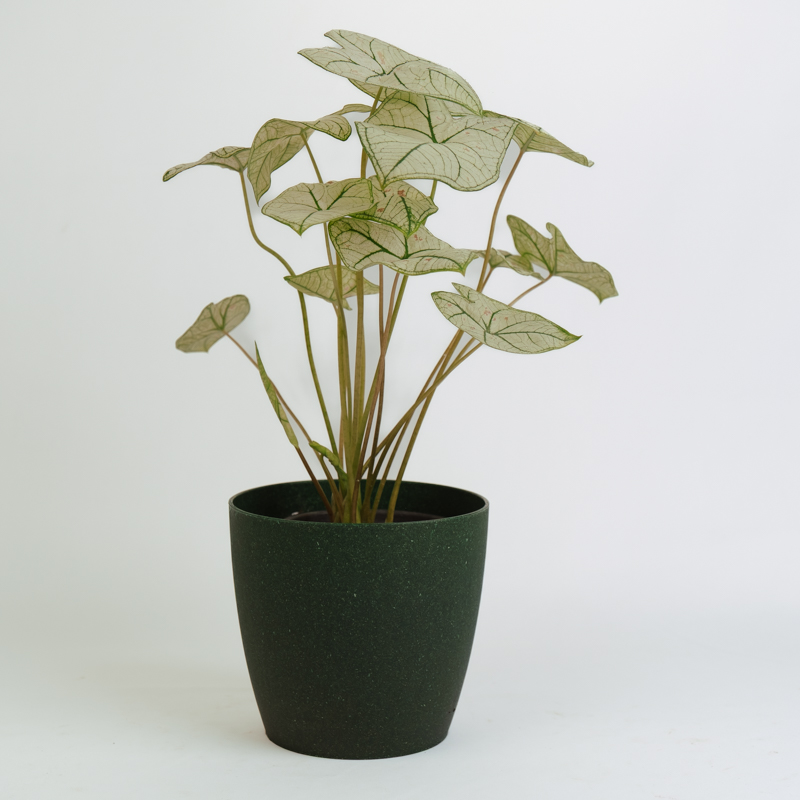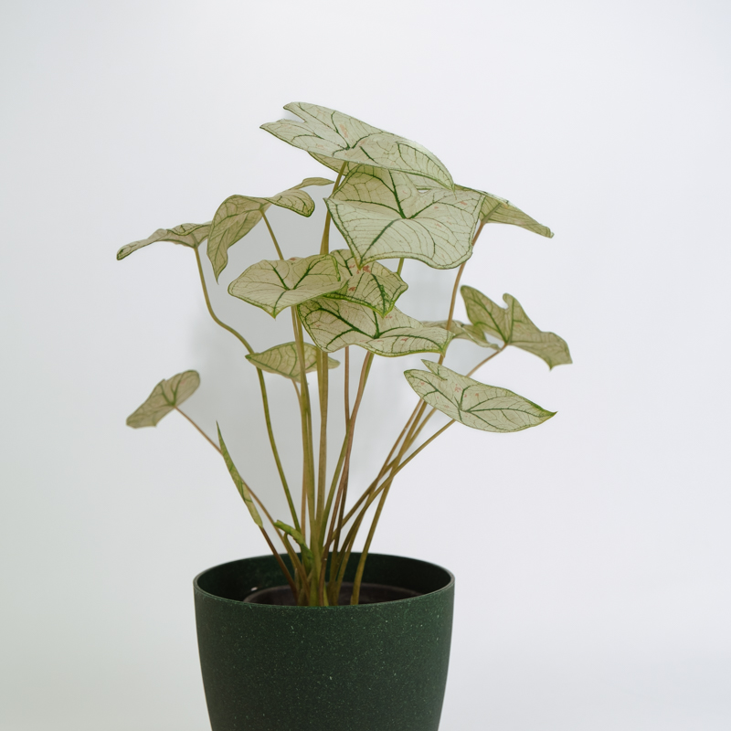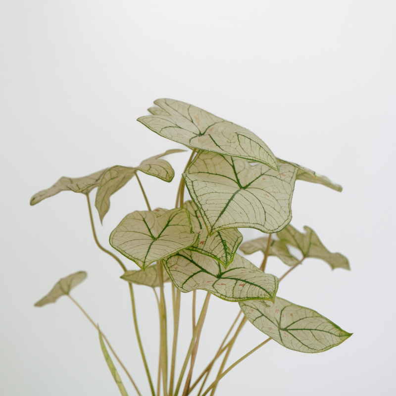 Caladium White is a beautiful ornamental plant known for its large, heart-shaped leaves with bright white centers and green edges or veins. Its striking foliage adds a touch of elegance and brightness to shaded gardens or indoor spaces. This tropical plant thrives in warm, humid environments and prefers indirect light. It is perfect for container gardens, patios, or as a soft accent in landscape designs. Caladium White brings a fresh, airy charm to any plant collection with its unique and graceful appearance.