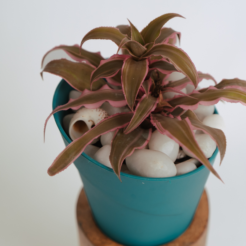Cryptanthus, commonly known as Earth Star, is a striking tropical plant known for its low-growing, star-shaped rosette of wavy, patterned leaves. It comes in a wide range of colors, including deep pinks, reds, silvers, and greens, often with stripes or mottling. Native to Brazil, Cryptanthus is a type of bromeliad that thrives in warm, humid environments. Its compact size makes it perfect for tabletops, terrariums, or small indoor planters. With its unique shape and bold foliage, Cryptanthus adds a dramatic, decorative touch to any indoor space.