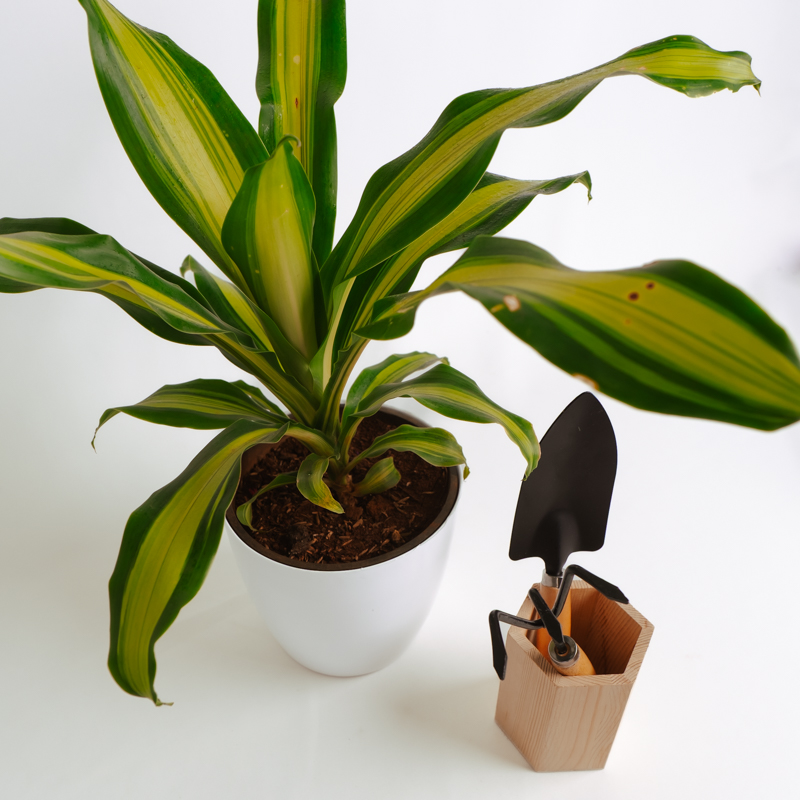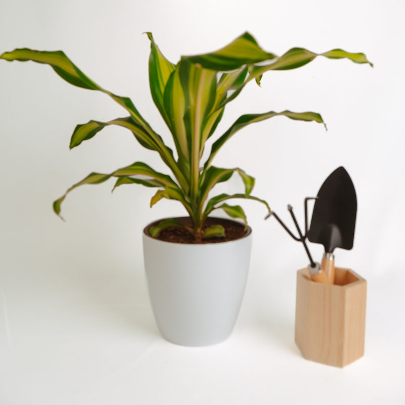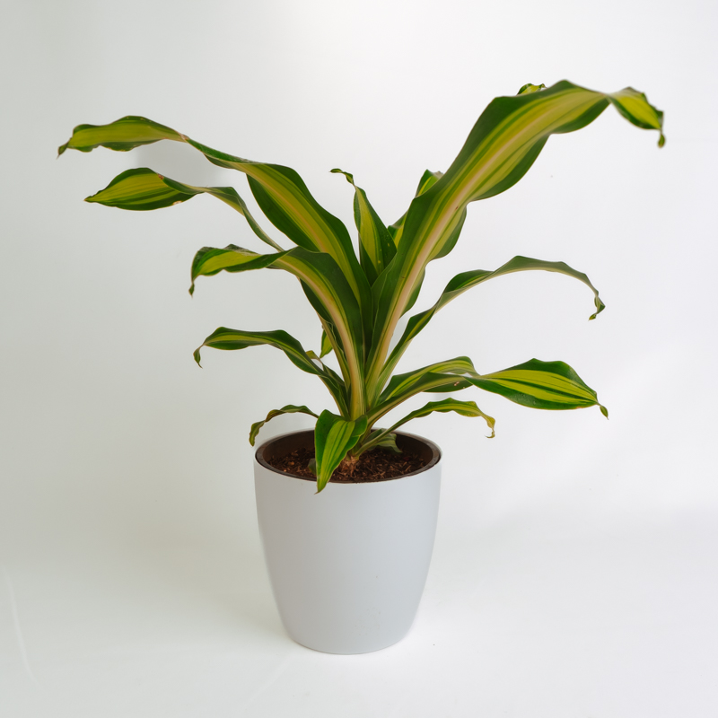 Dracaena Dara Singh is a striking indoor plant known for its bold, sword-like leaves with vibrant green and yellow variegation. It adds a strong vertical element to interiors, making it ideal for corners, hallways, or office spaces. This low-maintenance plant is also known for its air-purifying abilities, helping improve indoor air quality. It thrives in bright, indirect light but can adapt to low-light conditions. With minimal watering needs and attractive foliage, it’s a popular choice for both homes and workspaces.