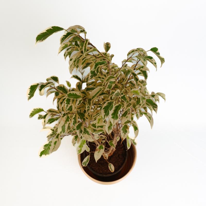 Ficus Variegated is a beautiful ornamental plant with creamy-white and green patterned leaves that brighten up any space.
