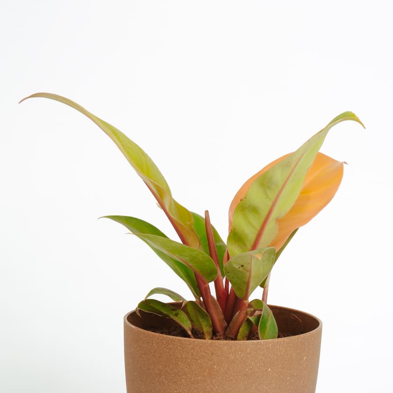 Philodendron Prince of Orange is a vibrant hybrid with striking new leaves that emerge bright orange and gradually mature to deep green.
