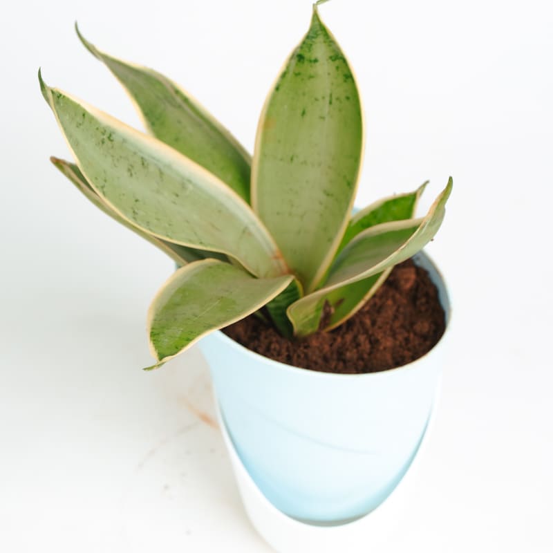 Sansevieria, commonly known as Snake Plant or Mother-in-Law’s Tongue, features upright, sword-shaped leaves with striking variegation.