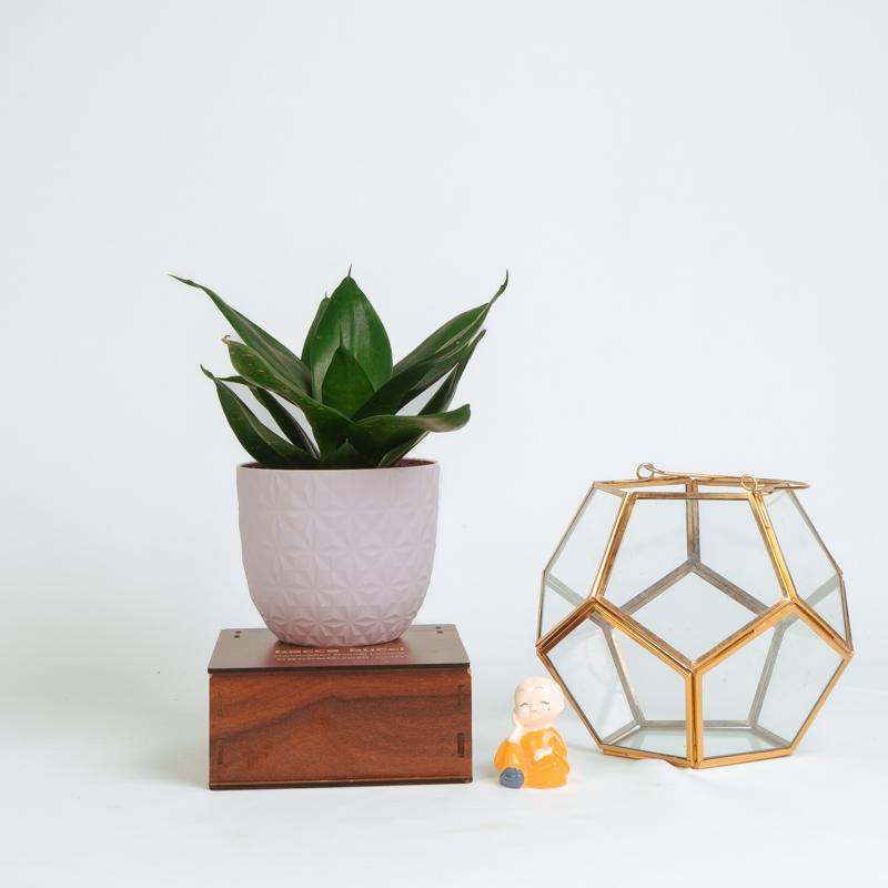 Sansevieria, also known as Snake Plant, is a hardy indoor plant with upright, sword-like leaves and striking variegation.
