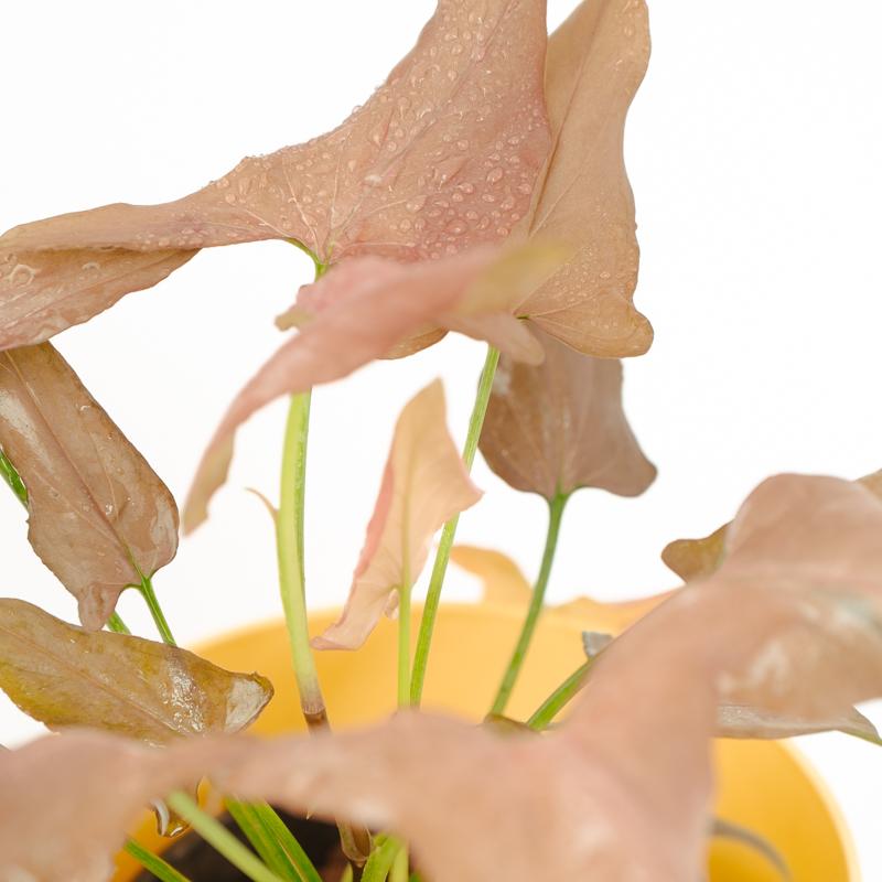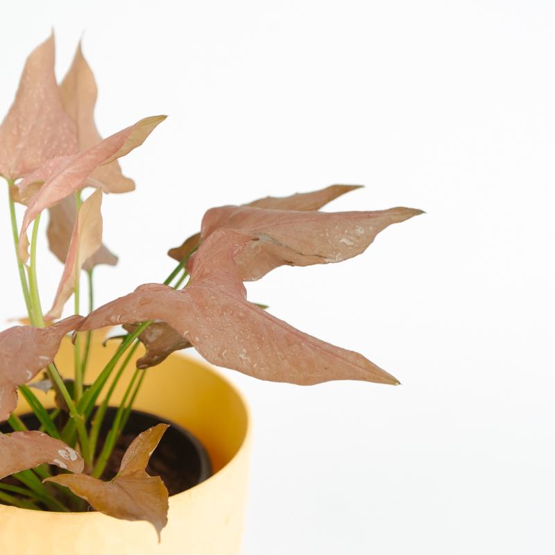 Pink Syngonium is a charming indoor plant with heart-shaped leaves in soft pink hues that add a splash of color to any space.